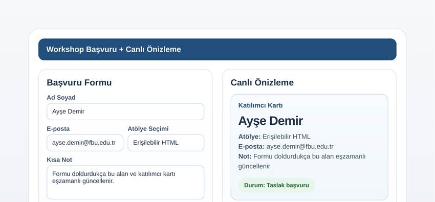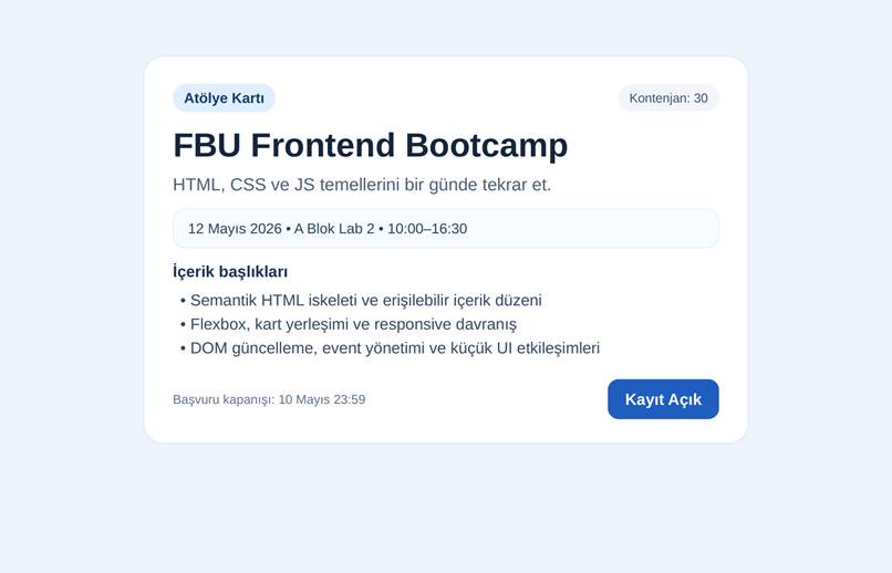4. Aşağıdaki görselde görülen atölye kartının yalnızca HTML iskeletini yazınız.